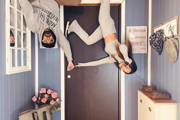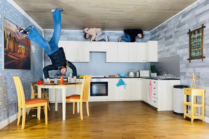 - Please mind you head in the house as all the furniture is on the ceiling.