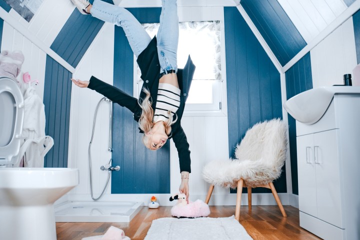 - Please mind you head in the house as all the furniture is on the ceiling.
